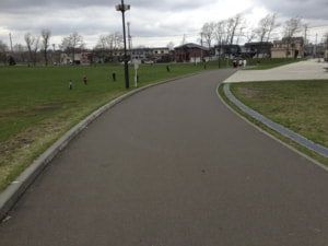 このサッカー場の周りに700mのアスファルトのコースがあり、ランニングやウォーキング、犬の散歩などで利用する方がたくさんいます。